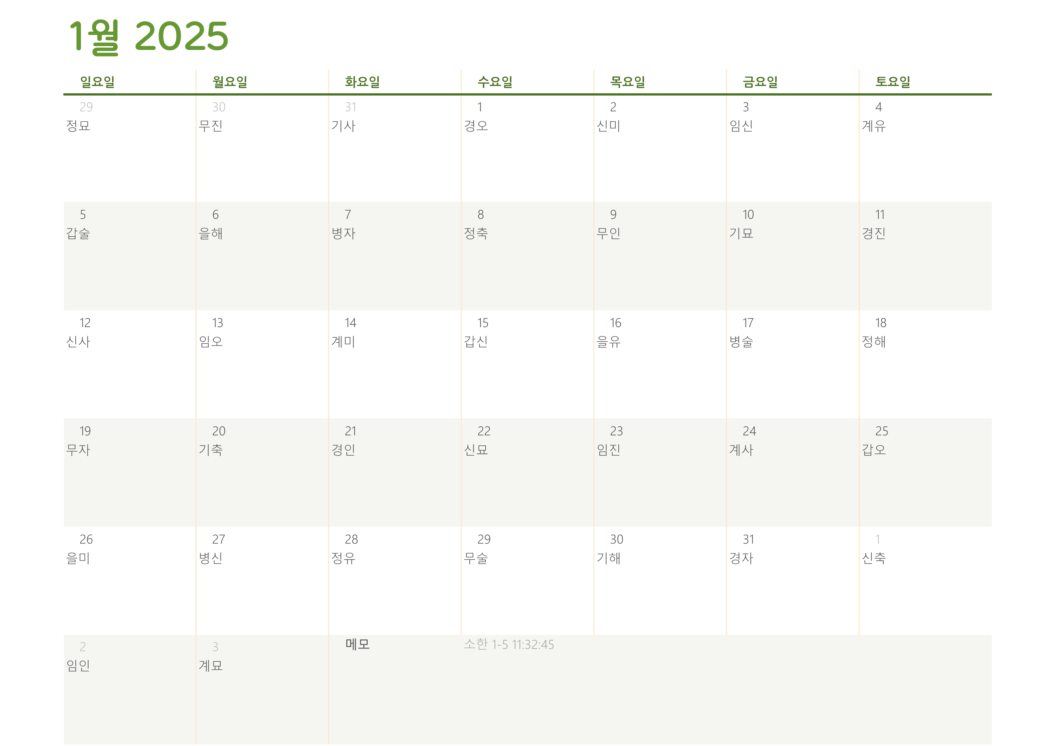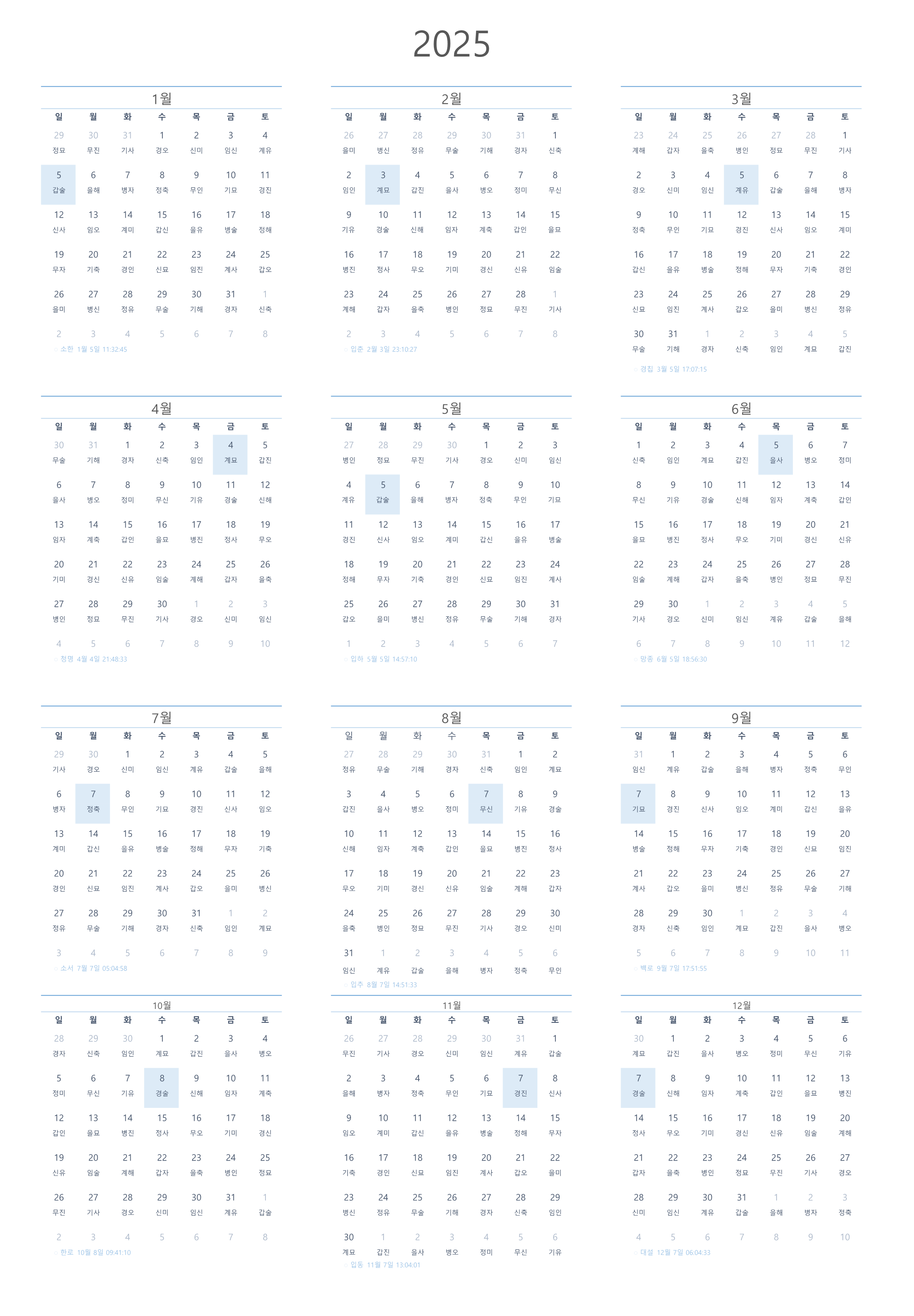 2025년 연간 전체만세력 엑셀 PDF 다운로드